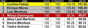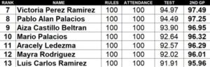 diciembre 17, 2023(December 16, 2023) We congratulate Cynthia Fabian for earning 1st place in this grading period. Kudos to Enrique Moran and Luis Mendoza on earning 2nd as well as Mireya Dominguez on earning 3rd place.