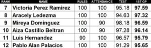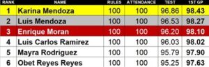 We congratulate Karina Mendoza for earning 1st place in this grading period. Kudos for Luis Mendoza and Enrique Moran on earning 2nd and 3rd place.