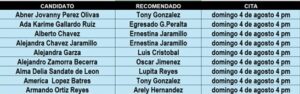 Cualquier error en el nombre de algún candidato será corregido en la junta informativa.