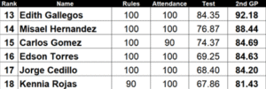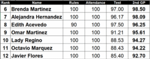 We congratulate Dariela Soto on earning 1st place in this grading period. Kudos to Ricardo Arguijo and Itzel Escobedo on earning 2nd and 3rd place.