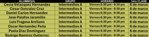 El grupo de INTERMEDIOS ‘A’ VIERNES su clase será en ZONA CENTRO