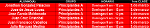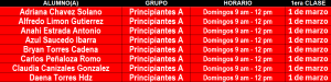 PRINCIPIANTES ‘A’ su clase será en ZONA CENTRO.