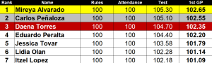 We congratulate Mireya Alvarado for earning 1st place in this grading period. Kudos to Carlos Peñaloza for earning 2nd place as Daena Torres for their 3rd place finish.